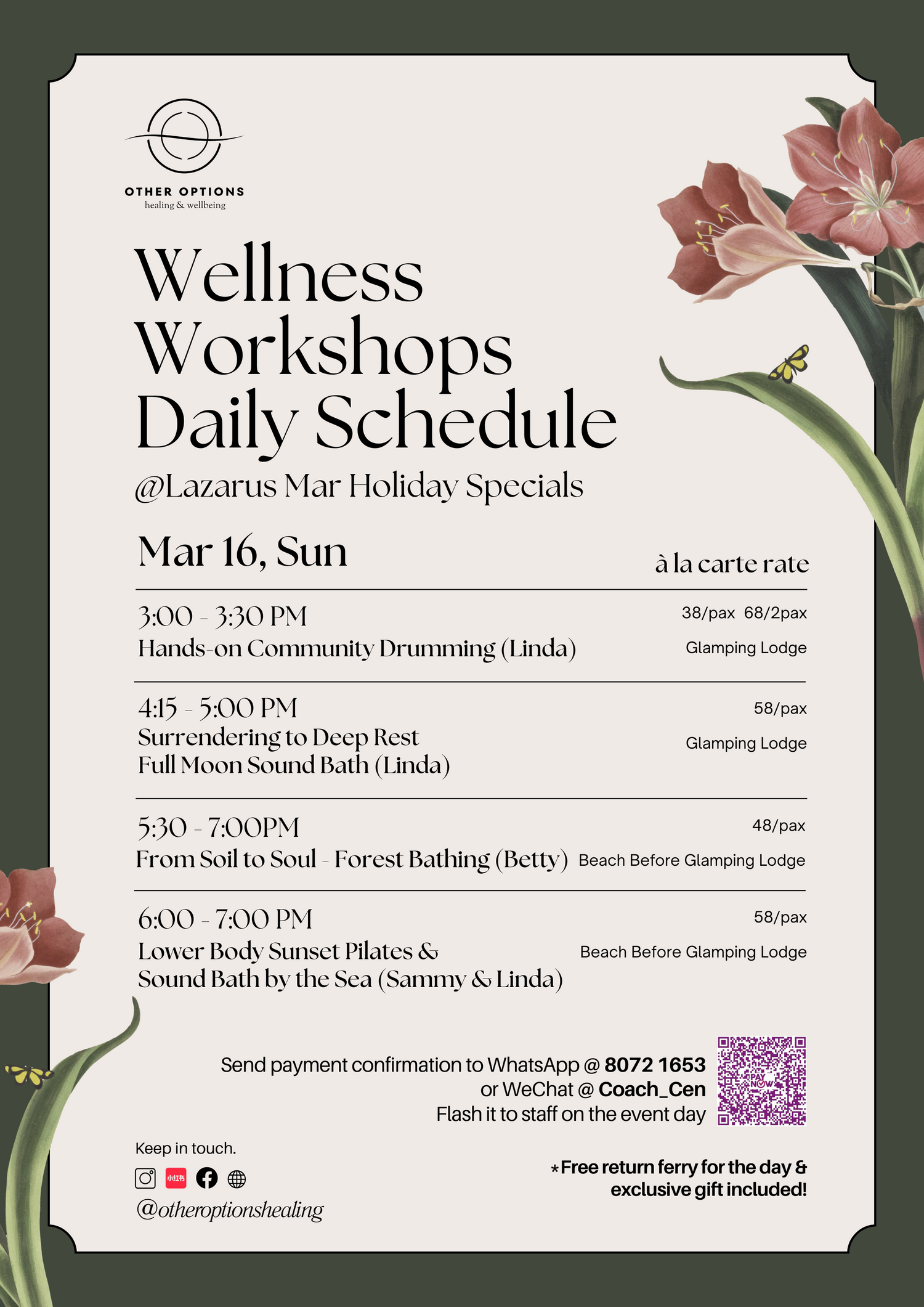 🌿Reserve Your Spot: Follow the guide in the bottom right corner of any Daily Schedule, and treat yourself and your loved ones to a weekend of serenity and indulgence🏝️