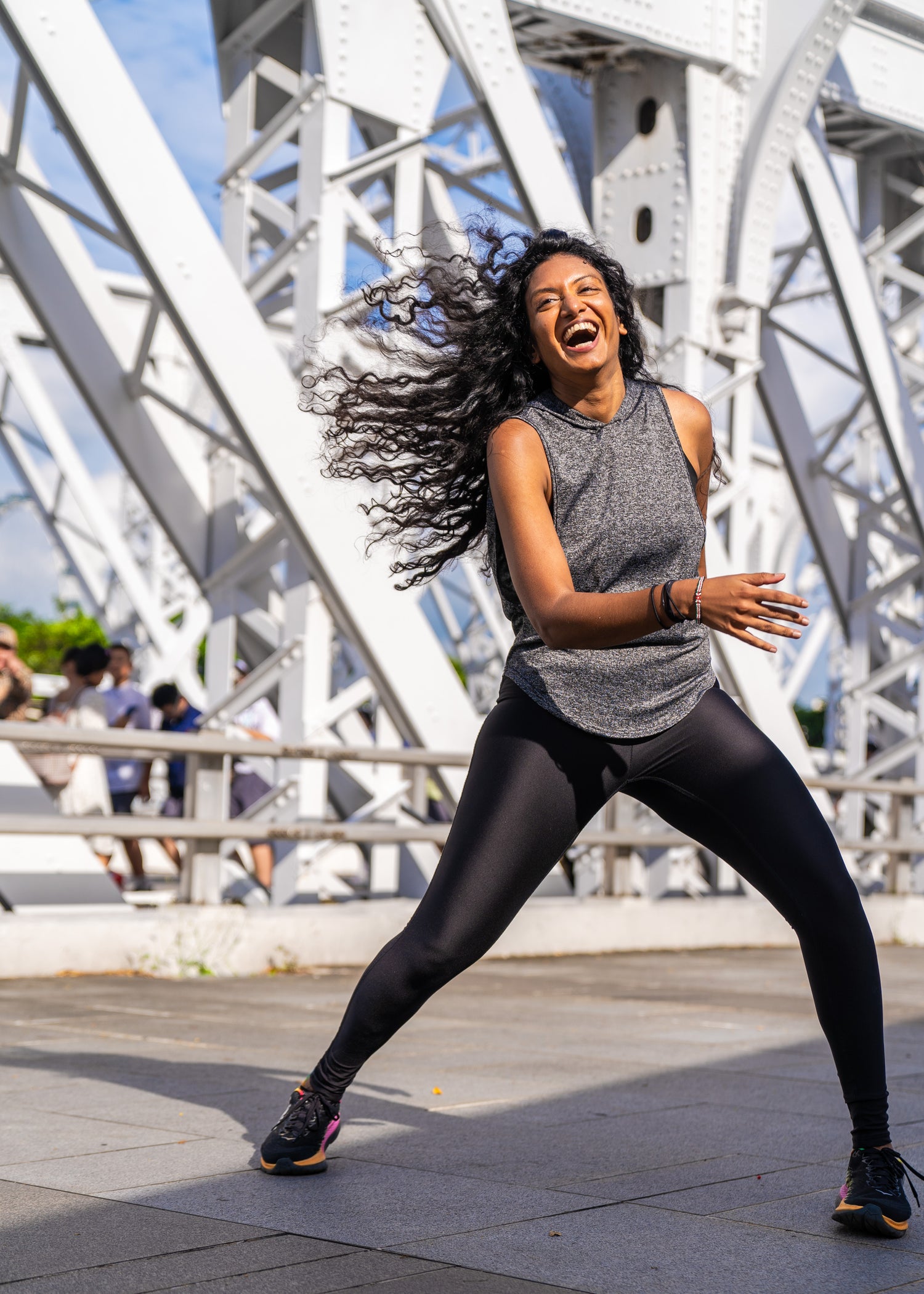 Her signature AfrowithJeevi (AWJ) sessions are inspired by her travels across Africa, where she immersed herself in the region's culture and rhythms. Based in Singapore, and Nairobi, Kenya, Jeevi's mission is to help individuals push their boundaries and reconnect with their true selves through movement.